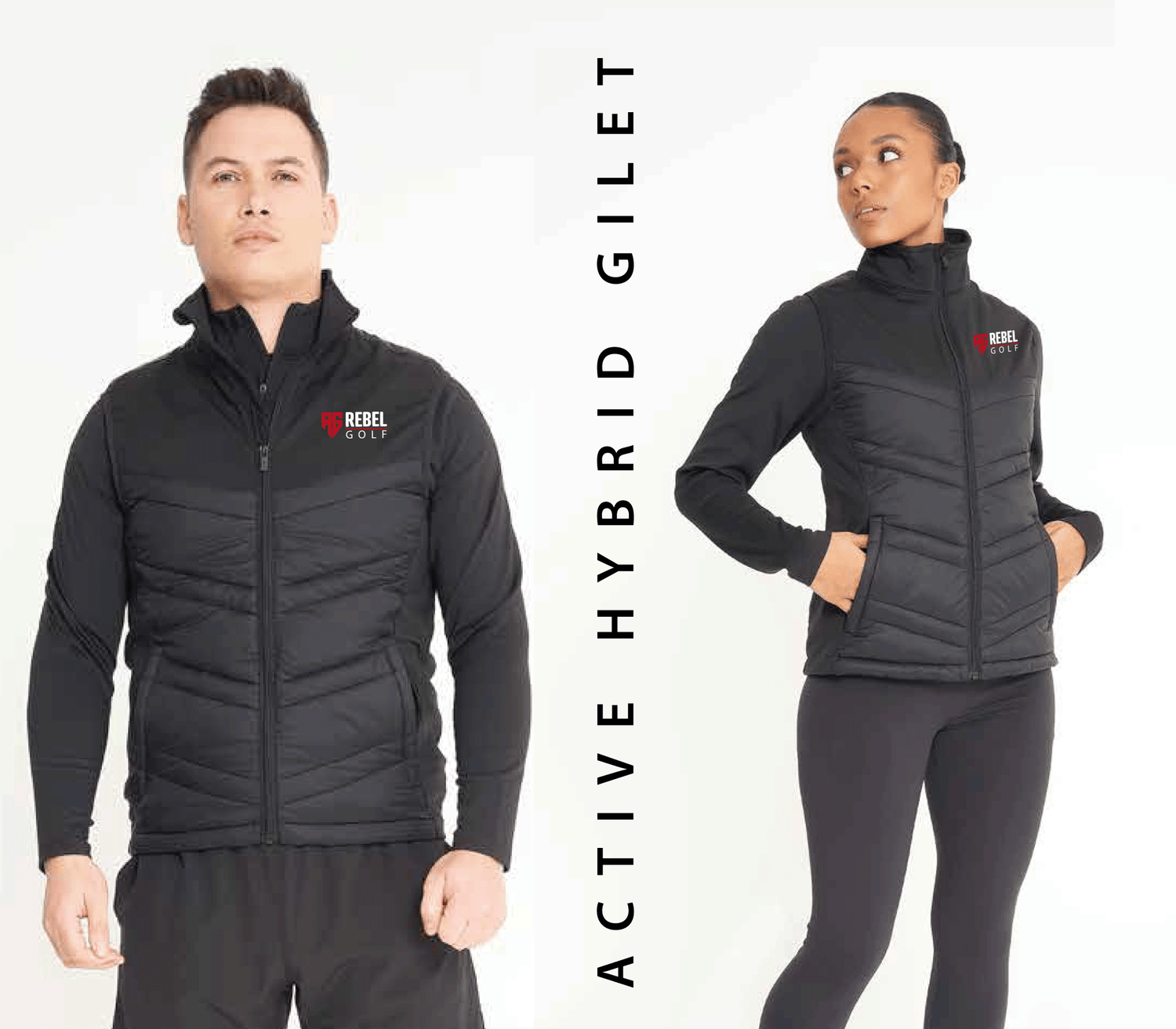 The Active Hybrid Gilet is a lightweight padded gilet. An ideal additional layer for those cooler days on the course.